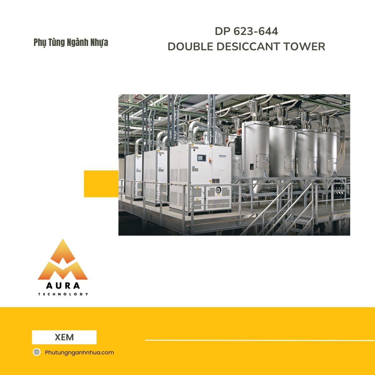 Máy sấy nhựa DP-623-644-Series từ Phutungnganhnhua.com là một hệ thống sấy khô tiên tiến, được thiết kế để xử lý các loại nhựa hút ẩm với điểm sương thấp hơn -55°C và nhiệt độ không khí xử lý lên đến 200°C (phiên bản HT). Được trang bị bộ điều khiển vi xử lý với thuật toán PID tự điều chỉnh, dòng máy này mang lại độ chính xác cao, hiệu suất năng lượng tối ưu và khả năng tích hợp vào các dây chuyền sản xuất thông minh.